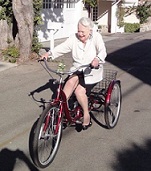 De Havilland was last seen in public following her July 1 birthday looking fantastic on a big red tricycle on the streets of Paris: